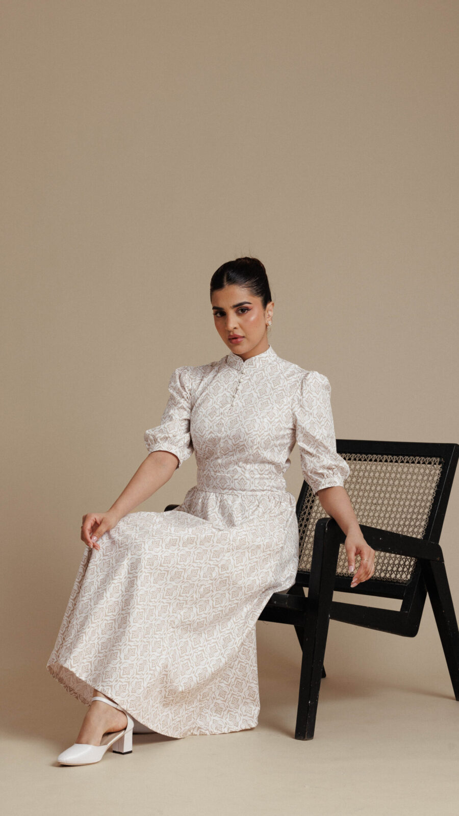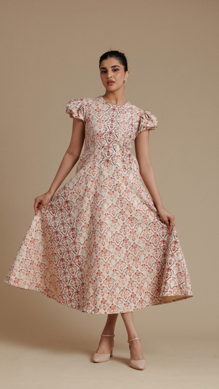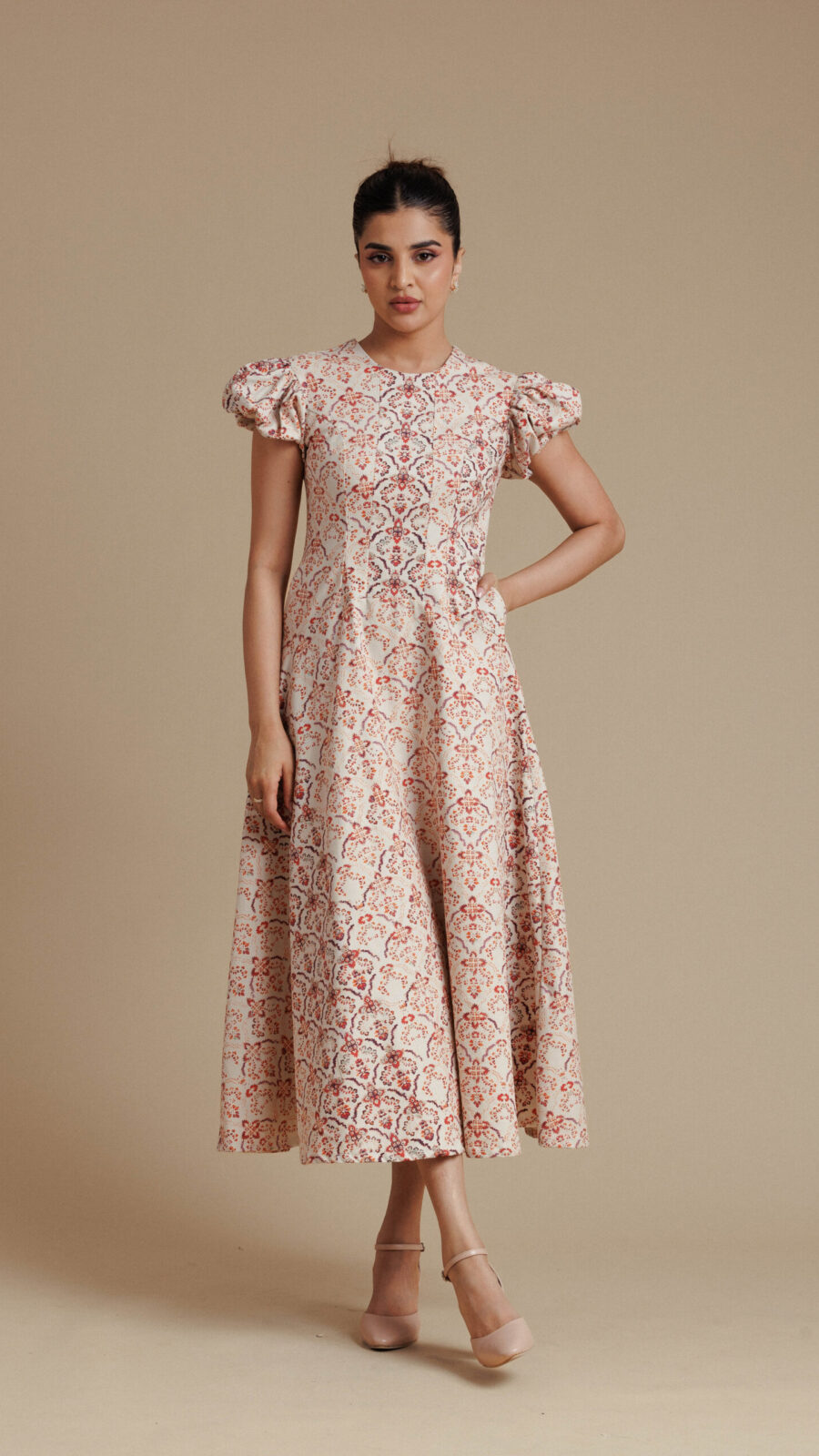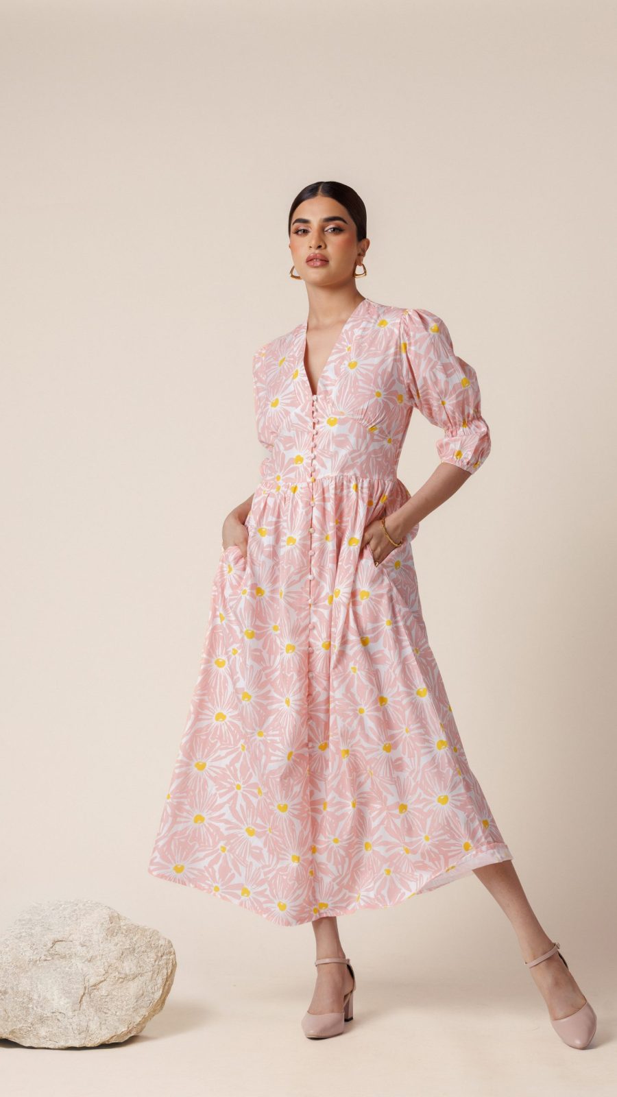 V-Neck Lantern Sleeve Floral Cotton Maxi Dress