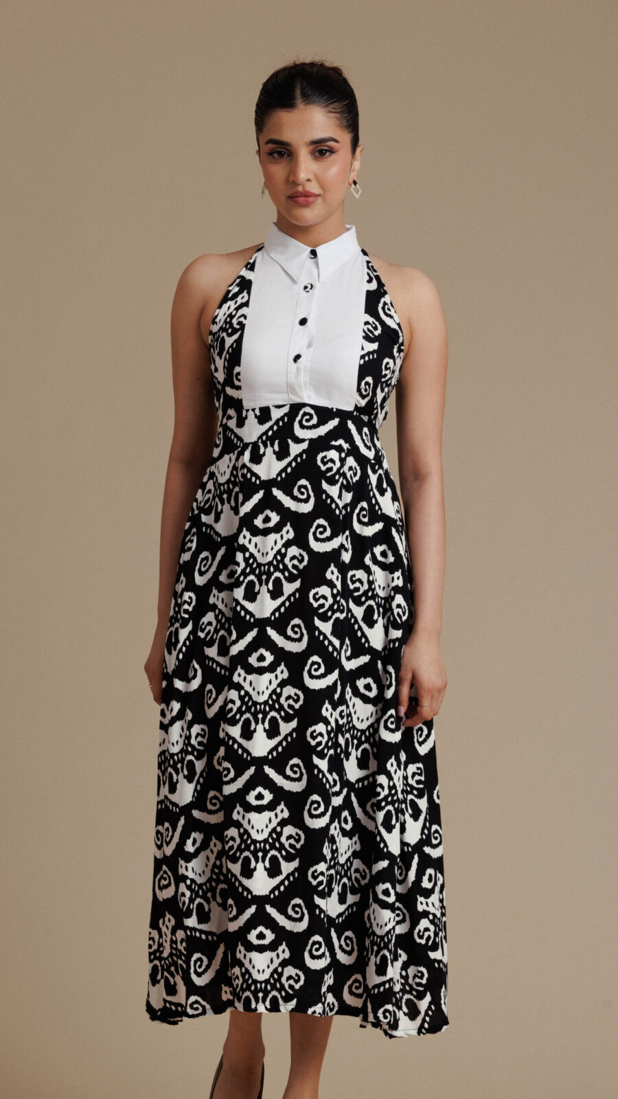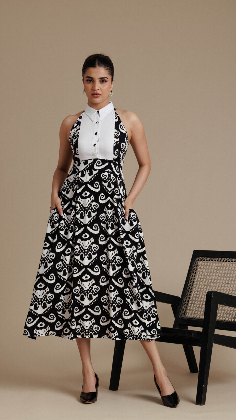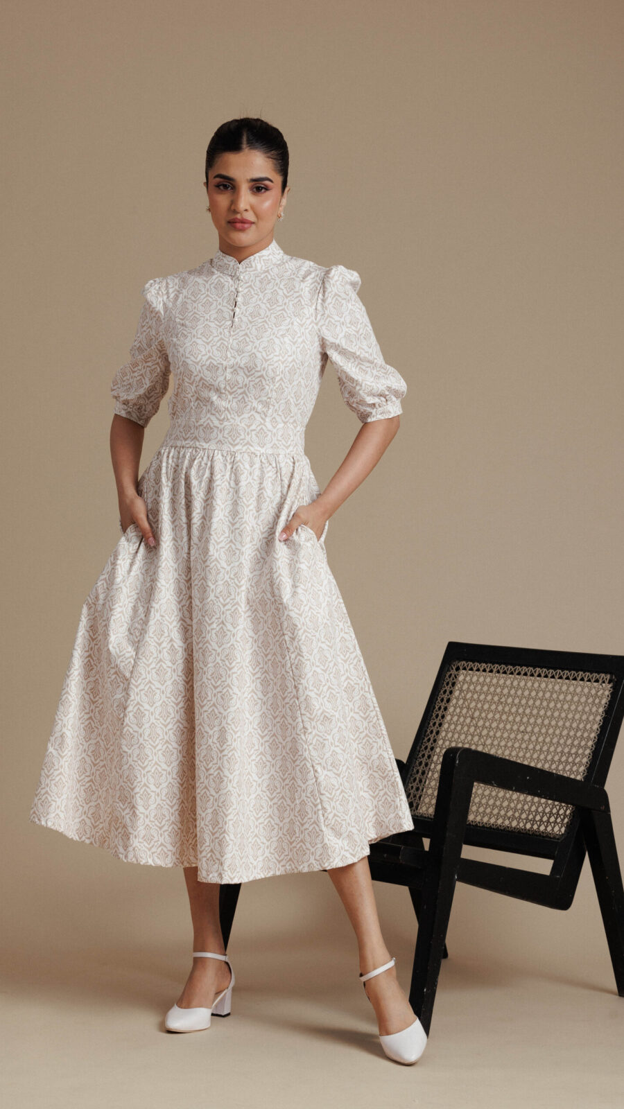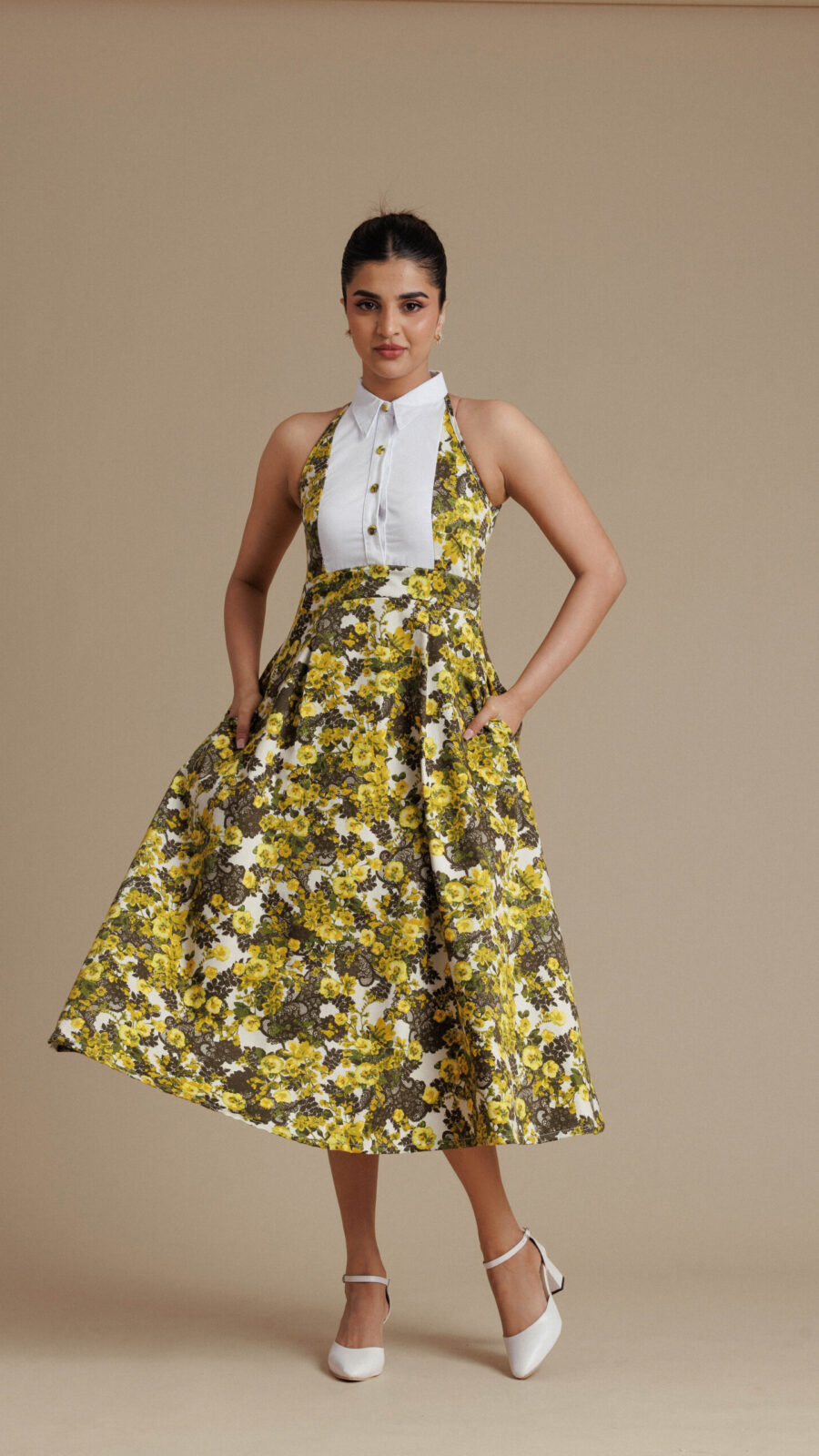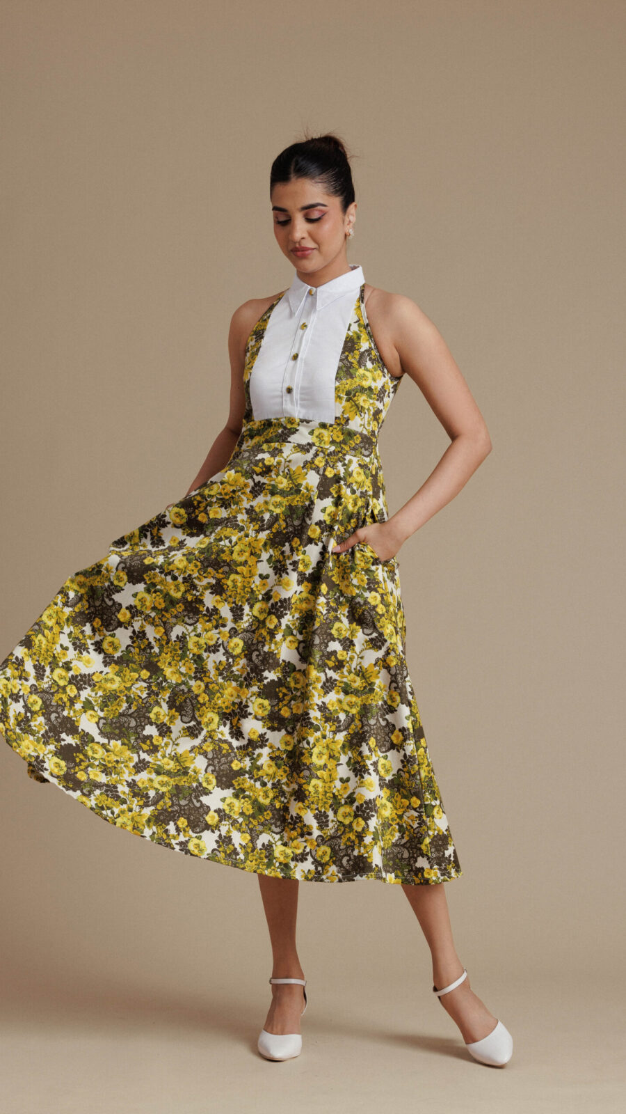 V-Neck Lantern Sleeve Floral Cotton Maxi Dress