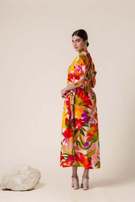 LKR 4,750.00 SKU: WTN02-FYV-Neck Lantern Sleeve Floral Cotton Maxi Dress